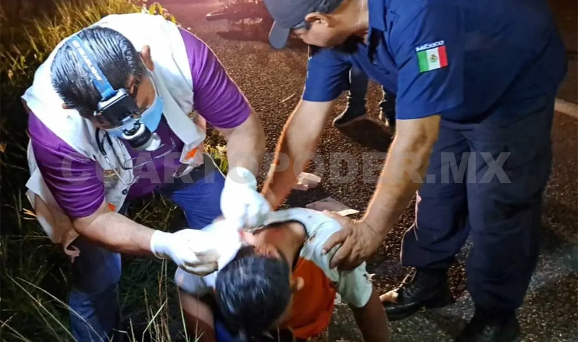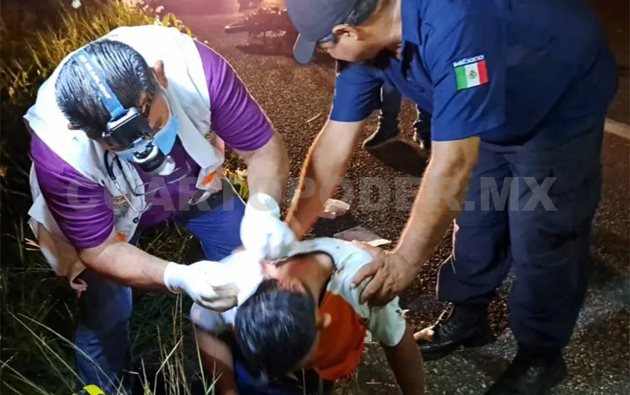 Al ser valorado y atendido por los paramédicos se informó que presentaba golpes contusos y heridas profundas que requirieron atención médica especializada en el hospital general de Palenque.
