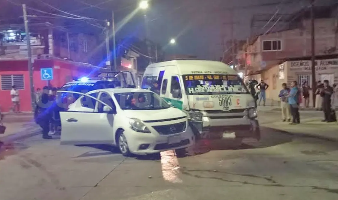 En este sentido, el automovilista se pasó la preferencia y terminó estrellándose contra un un transporte público en modalidad de colectivo, Toyota tipo Hiace, en color blanco con verde uniformado, con número económico 5603, modelo 2018, láminas locales y maniobrado por Hugo “N”.