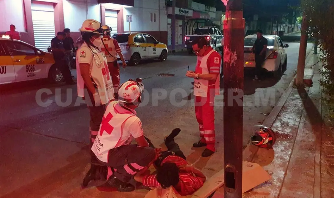 Con múltiples lesiones en las extremidades terminó un joven motociclista luego de ser impactado por un transporte público en modalidad de taxi, en la zona centro de la capital. El sujeto tuvo que ser revisado por socorristas.