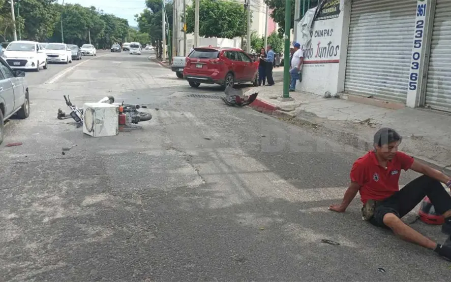 Con múltiples contusiones terminó un motociclista luego de ser impactado por un vehículo particular en la entrada a Caña Hueca, en la capital del estado.