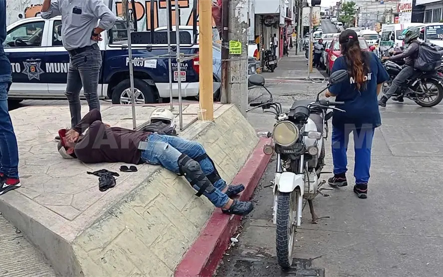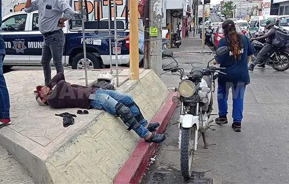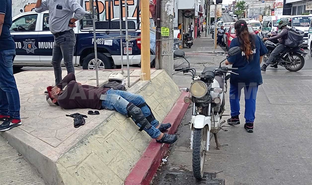 Con múltiples lesiones terminó un motociclista luego de ser impactado por un transporte público en modalidad de taxi, en la 9ª Sur y 8ª Oriente en la capital del estado, por lo que el afectado tuvo que ser valorado por paramédicos.