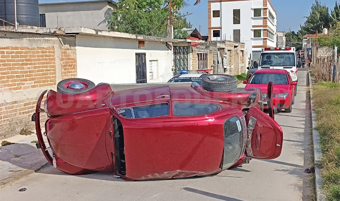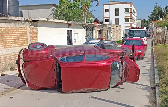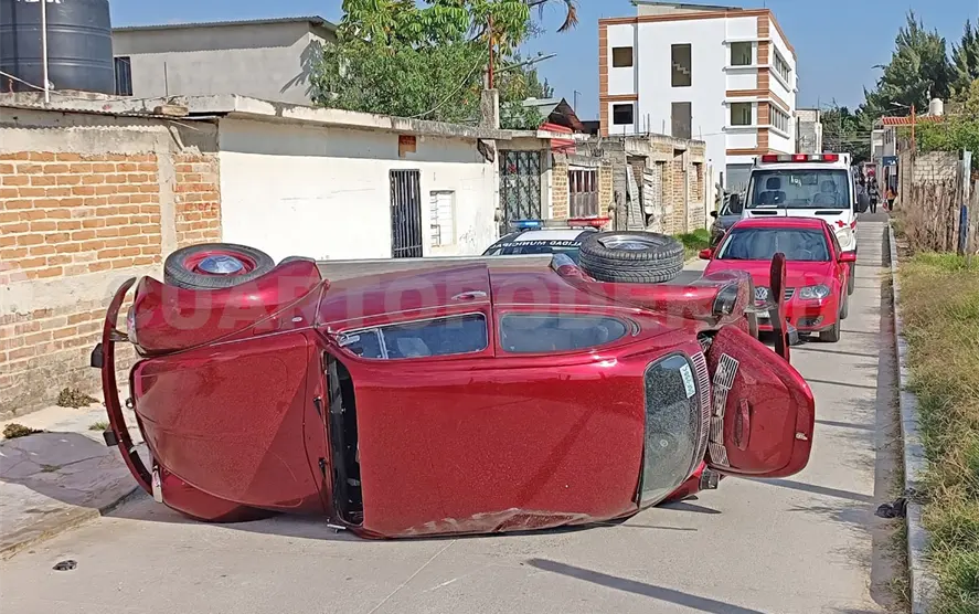 Por lo que al pasar de manera intempestiva se estrelló contra un Volkswagen Sedán de color guinda, modelo 1992, que se dirigía hacia el sur, el cual terminó por dar un giro, colisionar con las llantas en la banqueta, volcar y quedar recostado sobre su costado izquierdo.