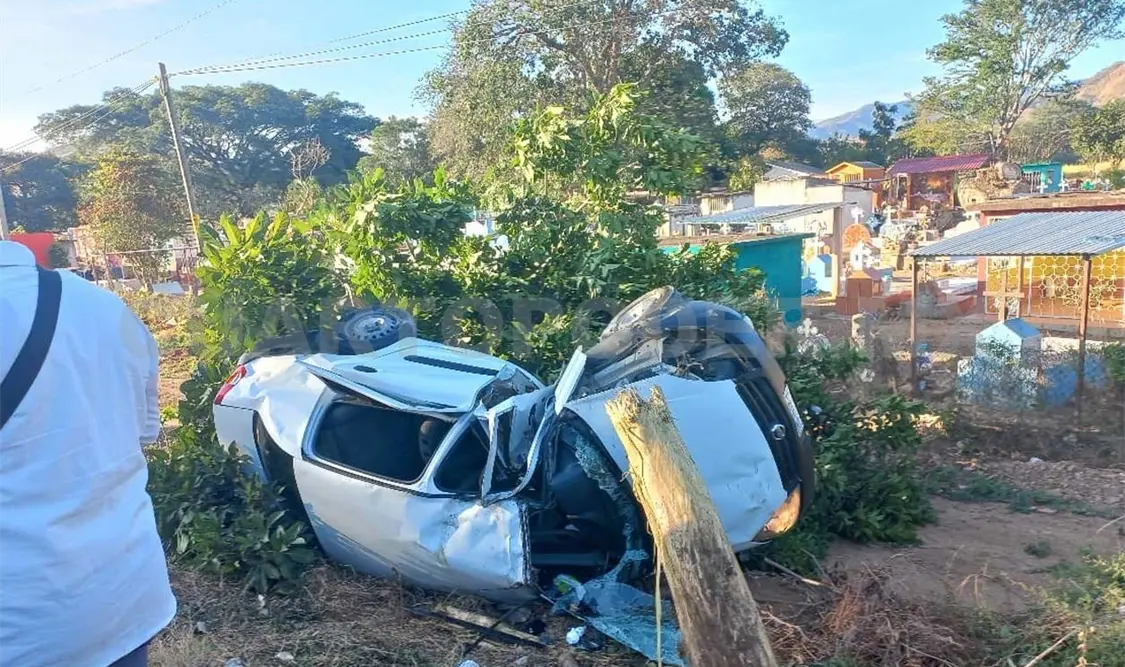 Transcurría la mañana del martes cuando colonos del ejido mencionado se percataron de un aparatoso accidente carretero que involucró a un automóvil de color blanco, el cual acabó completamente destrozado luego de colisionar contra un árbol, según testigos.