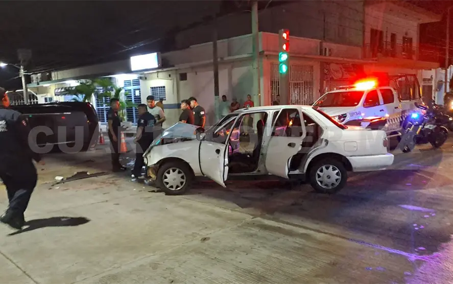 Se informó que un automóvil Nissan Tsuru se desplazaba de sur a norte sobre la avenida, pero al llegar al cruce de la 15ª Oriente-Poniente fue impactado por una camioneta de color negro.
