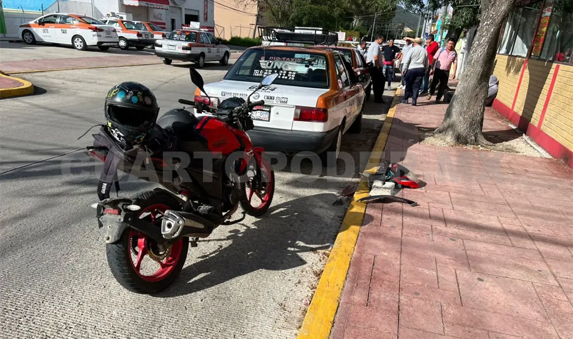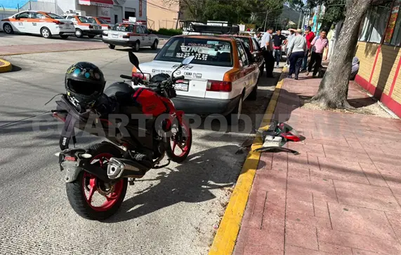 Esto cuando un motociclista que se dirigía al sur pretendió ganarle al cambio de luces al semáforo y terminó estampándose contra un taxi con número económico 0266 del sitio UNO.