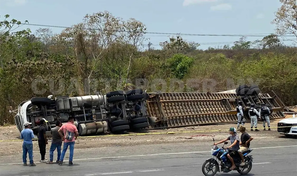 Una nueva volcadura de un tráiler se registró el viernes en la denominada Curva del Diablo en la demarcación del municipio de Huixtla, la tercera en este mes, donde las autoridades policiacas y elementos del Ejército evitaron el saqueo de los productos de abarrotes que transportaba.