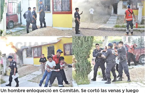 Paramédicos arribaron para auxiliar a Jesús, quien ya se había cortado las venas, aunque su presencia provocó que enloqueciera, cerrara con llave las puertas de la vivienda y comenzara a incendiar todo.