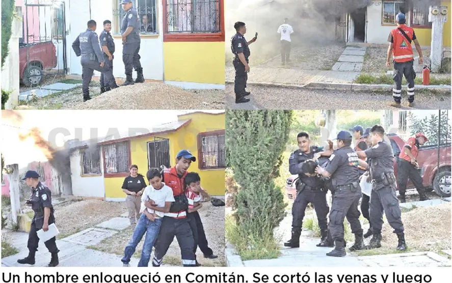 Un hombre que habría discutido con su esposa, fue detenido después de cortarse las venas e incendiar su casa, en el fraccionamiento Monteverde de Comitán.