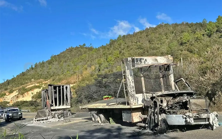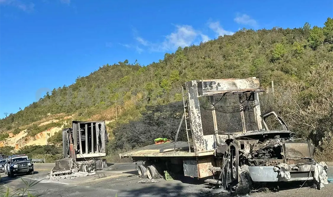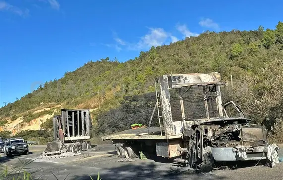 Fue entre los kilómetros 129 y 130, en las inmediaciones de la localidad Tulancá, municipio de Amatenango del Valle, donde los camiones quedaron calcinados.