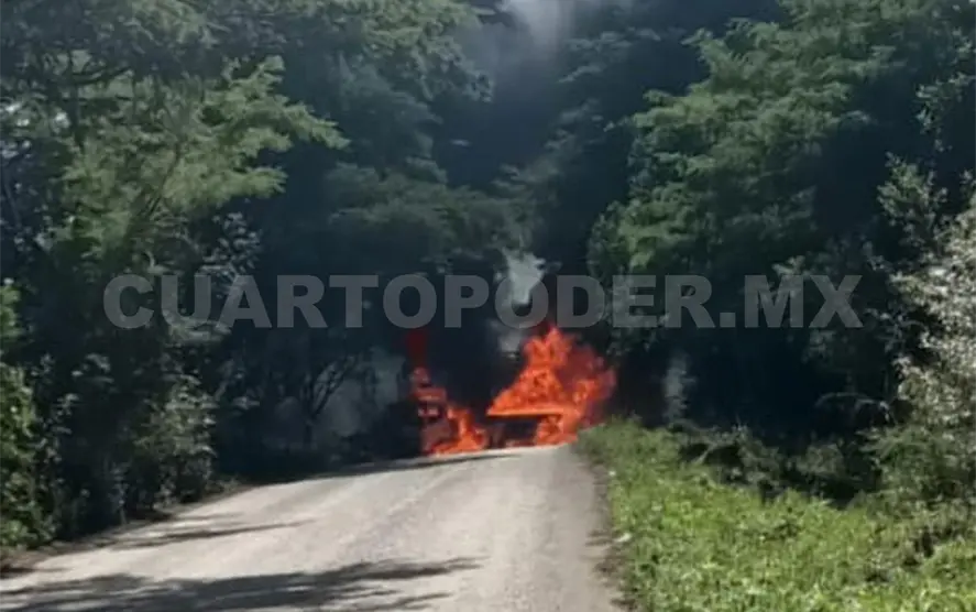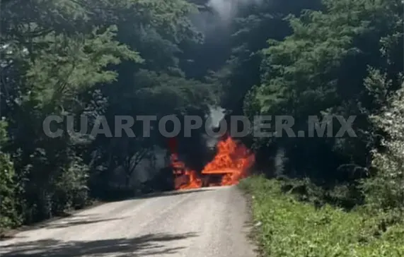 De manera agresiva se acercaron a una camioneta de una empresa privada y una de transporte de pollos, sin embargo, los choferes se negaron a pagar, lo que provocó que el grupo se enardeciera e incendiara los vehículos, después retuvo a los pasajeros.