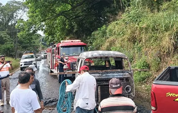 Se informó que el chofer se dio cuenta que salía humo de la parte del motor, por lo que detuvo su marcha, pero el fuego se propagó rápidamente en toda la combi.