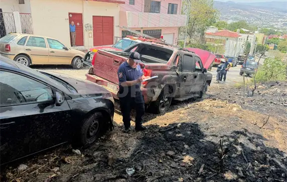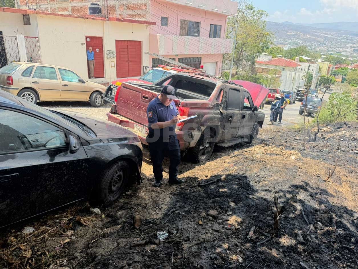 A escasos metros del lugar se encontraban dos unidades particulares, pertenecientes a un taller mecánico, las cuales fueron alcanzadas por el siniestro.