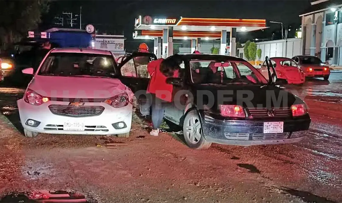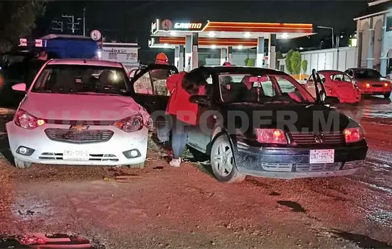 Los vehículos involucrados fueron un Aveo blanco (placas DMD-195-D) contra un Jetta color negro (matrícula DNT-447-C), sin embargo, el Volkswagen que circulaba al norte se detuvo y se estacionó a un costado de la vía para que un pasajero descendiera, pero al momento de abrir la portezuela trasera del lado derecho fueron impactados por el vehículo Chevrolet, cuyo conductor no guardó la distancia correspondiente.