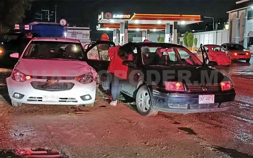 El joven estuvo a punto de quedar atrapado entre ambos vehículos, quedando la portezuela derecha del pasajero enrollado por la colisión, pero solo sufrió lesiones leves en la pierna derecha, siendo valorado por paramédicos de Protección Civil Municipal, quienes indicaron que los golpes no ponían en riesgo su vida y no era necesario trasladarlo al hospital.