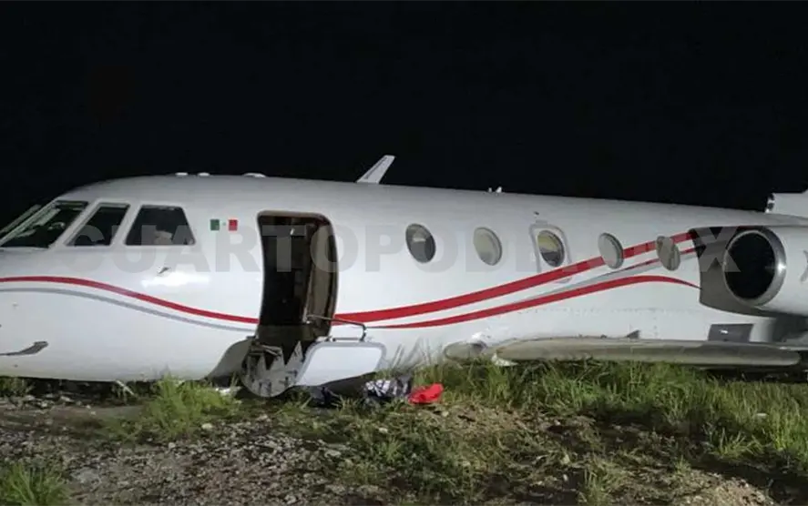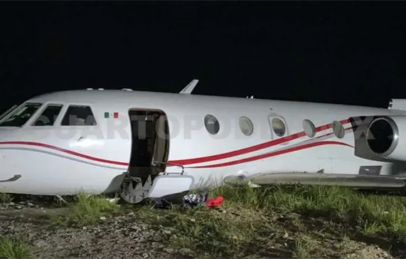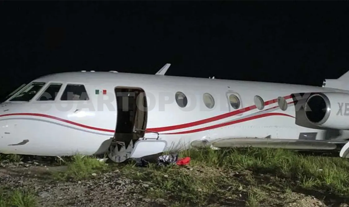 La aeronave jet tipo Falcon aterrizó en el aeropuerto de Palenque sin autorización. Los pilotos abandonaron la aeronave y fueron localizados escondidos entre la maleza.