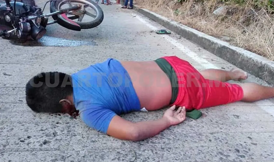 Un joven perdió la vida al derrapar la motocicleta que manejaba sobre el tramo carretero entre los ejidos Xochiltepec y Villa Hidalgo, sufriendo traumatismo craneoencefálico y otras fracturas.
