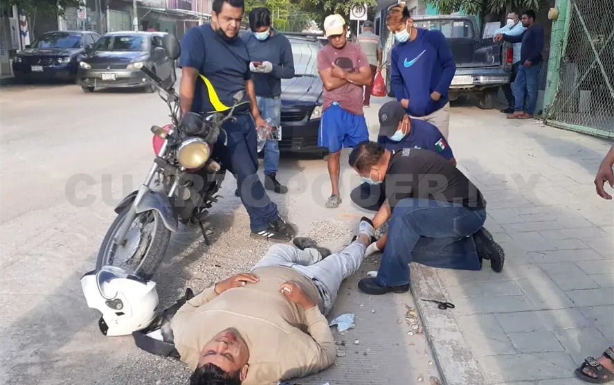 Con múltiples lesiones terminó un joven motociclista luego de ser impactado por un vehículo sobre la 12ª avenida Sur, esquina con la 15ª calle Oriente de la ciudad capital. La persona, en consecuencia, fue llevada a un sanatorio para recibir atención especializada.