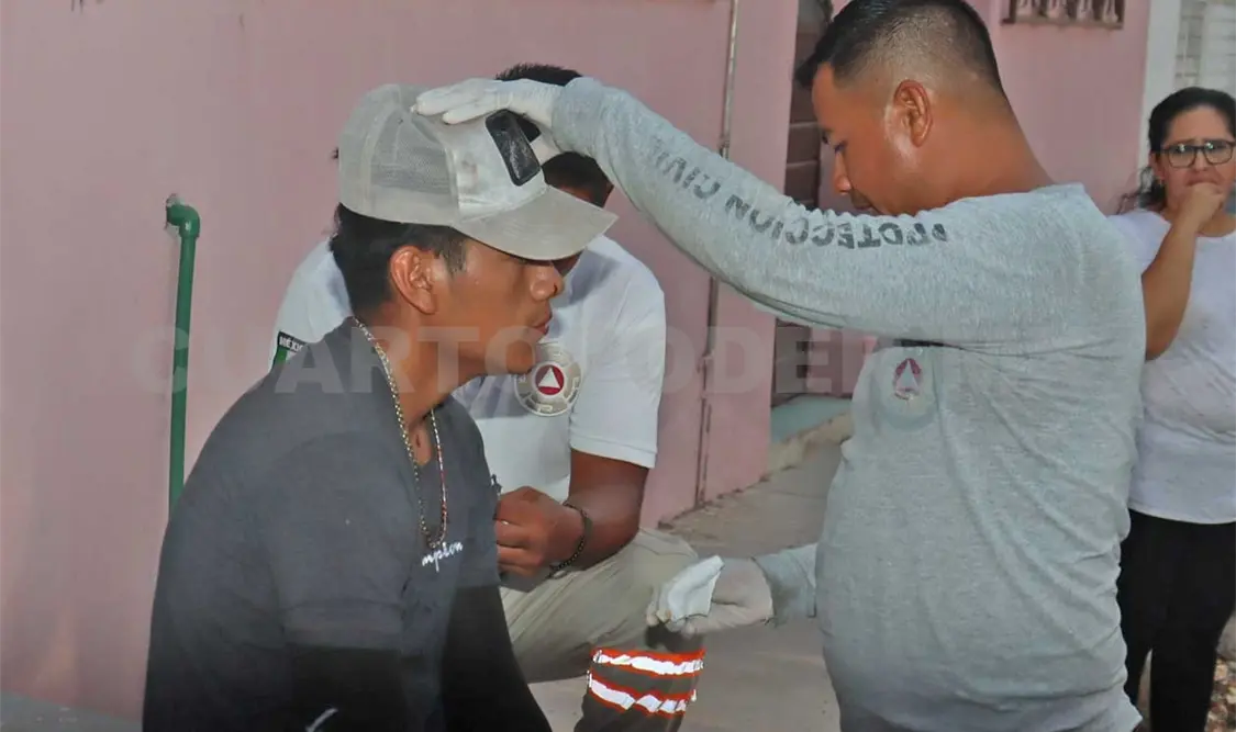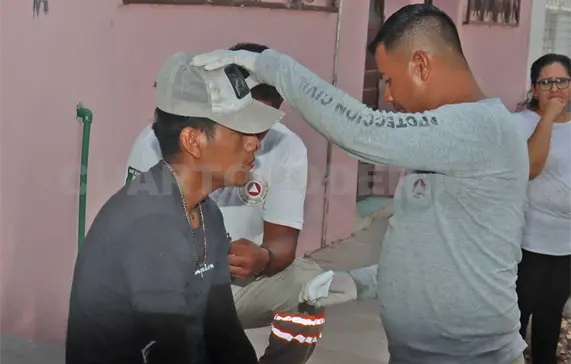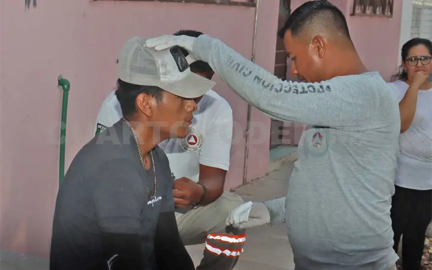 Por ello, paramédicos se constituyeron a la 9.ª avenida Sur y esquina con 2.ª calle Poniente para valorar al afectado llevando a cabo las curaciones necesarias ya que continuaba sangrando profusamente.