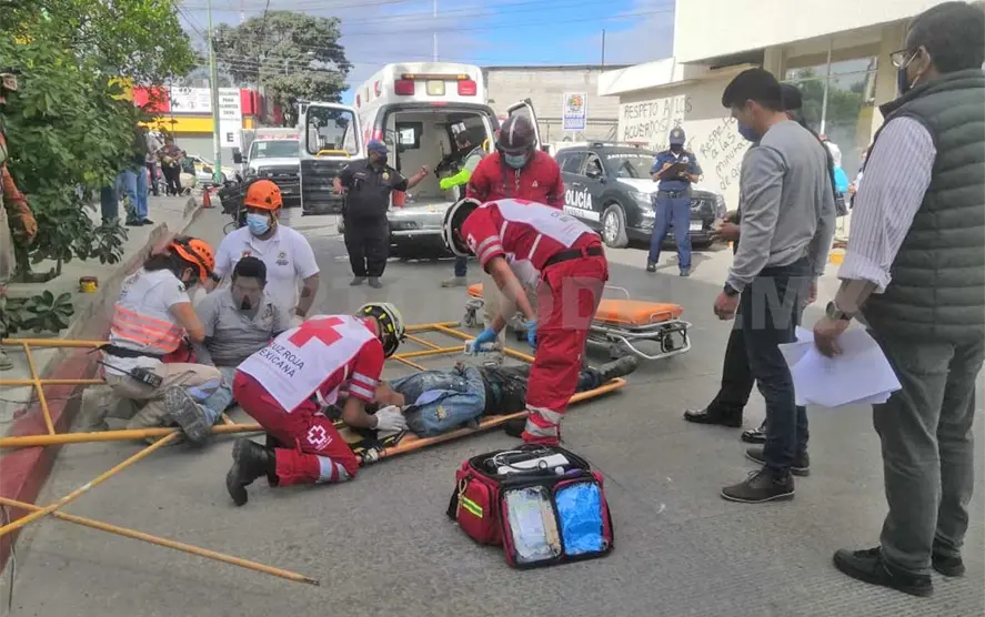 Eso provocó que los dos jóvenes que se encontraban en lo más alto se desplomaran con todo y herrería, quedando ambos en malas condiciones a media calle; además de afectar en su desplome cables de baja tensión del suministro energético de una propiedad.