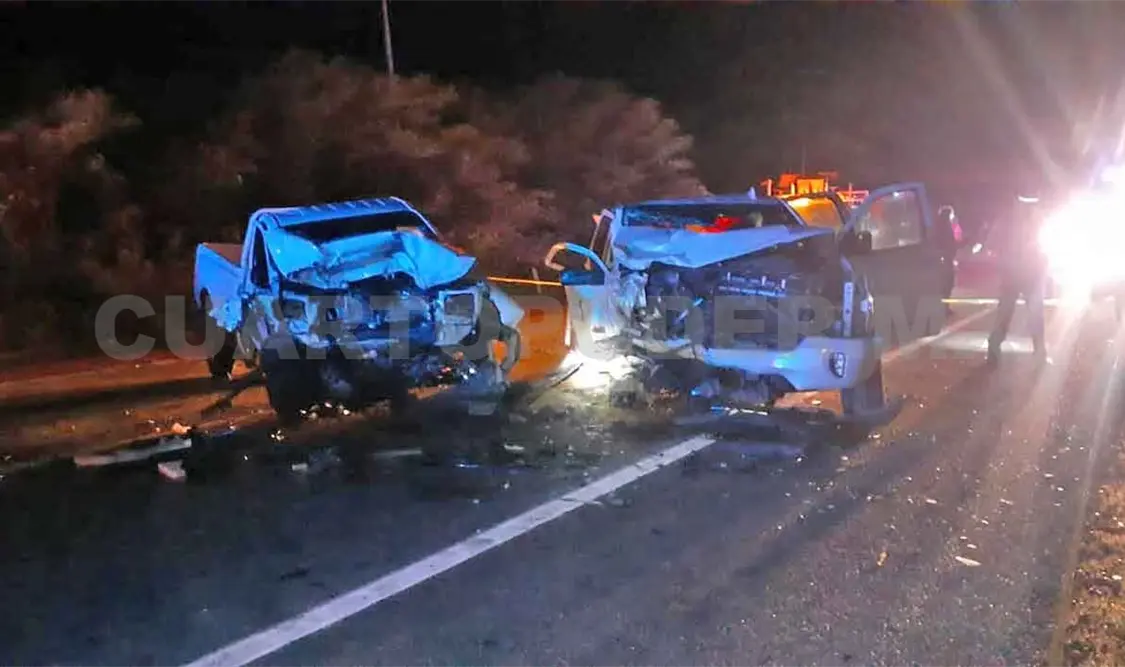 El choque se dio entre dos camionetas, una de la marca Nissan tipo Pick up, color blanco, con logotipos de la empresa Syngenta, contra una camioneta marca Chevrolet tipo Silverado, color blanco, con placas del estado de Chiapas.