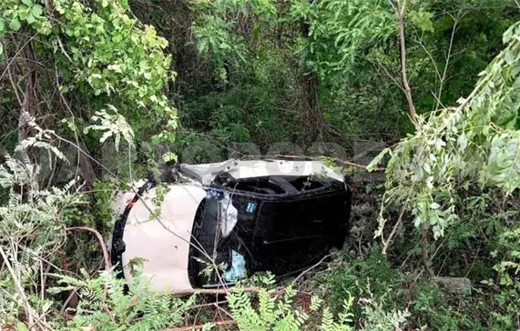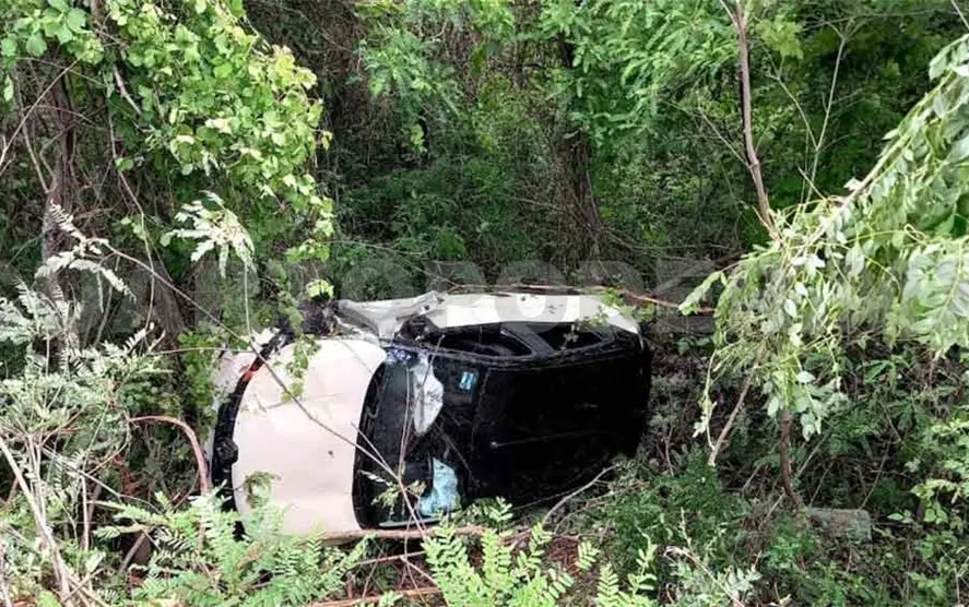 El conductor perdió el control en una curva, invadió carril y se salió del camino, cayendo a un barranco de 15 metros donde quedó recostado del lado derecho entre la maleza.