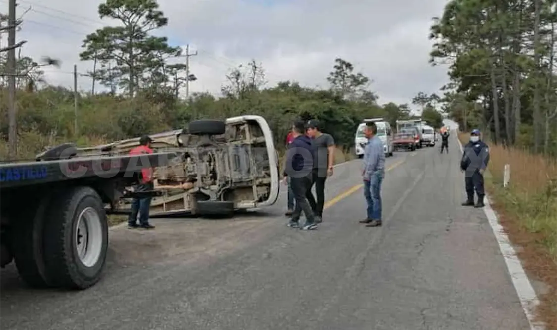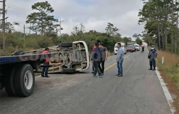 Una presunta falla mecánica en una combi provocó que volcara cuando circulaba en el tramo La Trinitaria–Lagos de Montebello, ayer en la mañana, lo cual dejó a varios pasajeros lesionados.