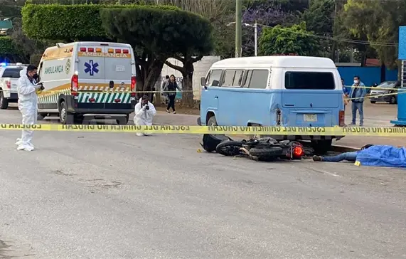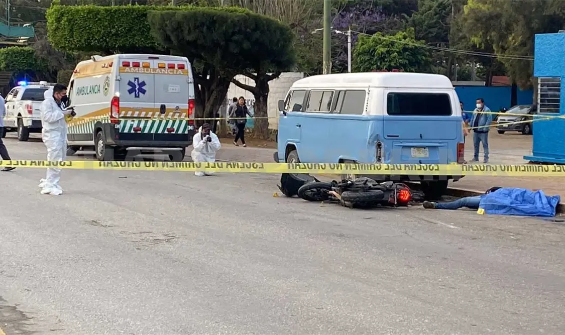 Al ser chocado por el automovilista fue aventado varios metros e impactó detrás de una combi de color celeste, que se encontraba estacionada a un costado de la vía.