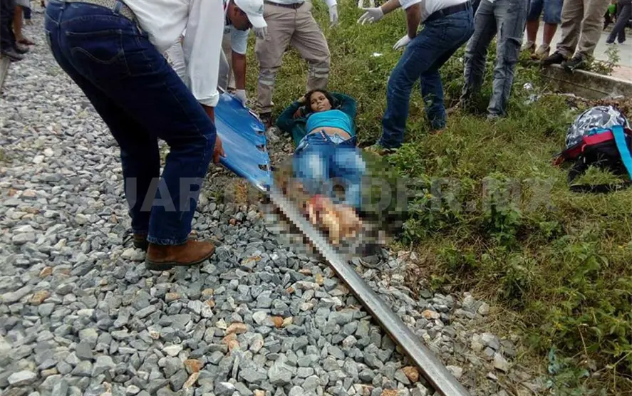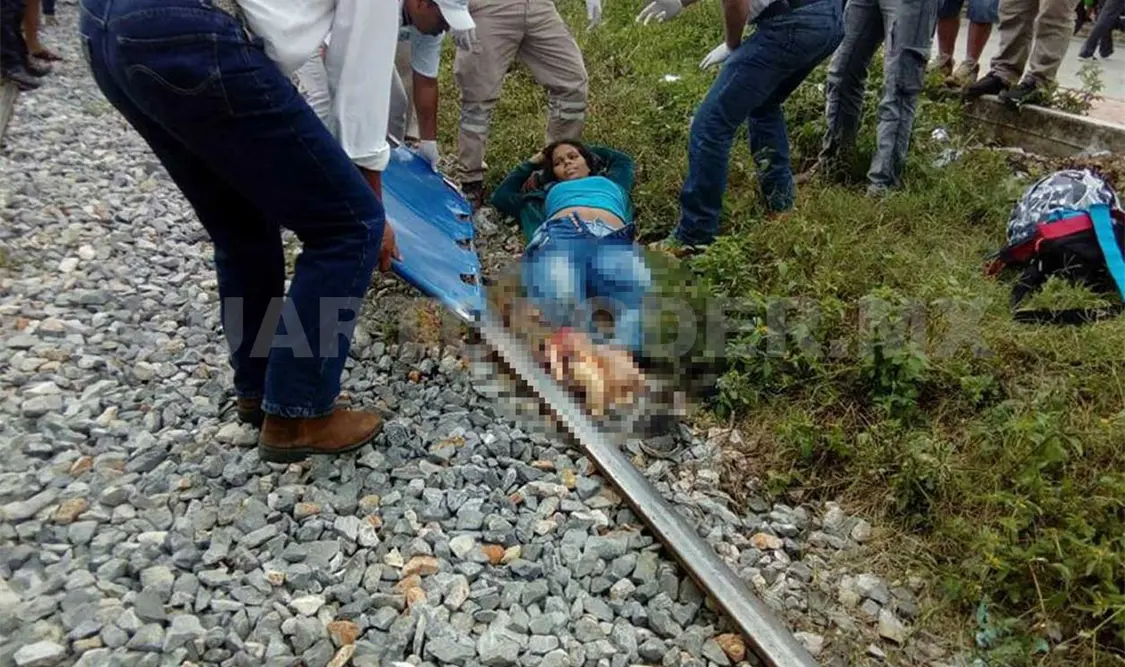 Una mujer embarazada cayó del tren “La Bestia” cuando intentó subirse resbaló y quedó sobre los rieles, por lo que fue mutilada su pierna. La víctima fue llevada a un hospital.