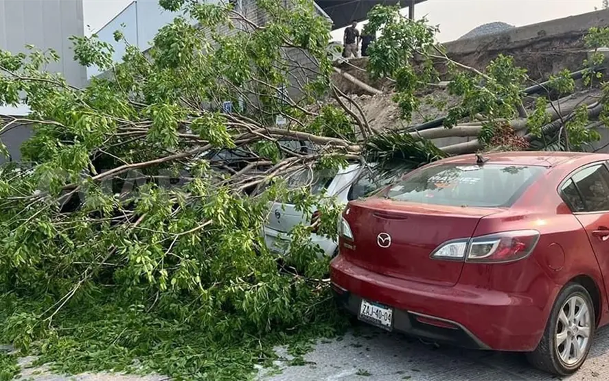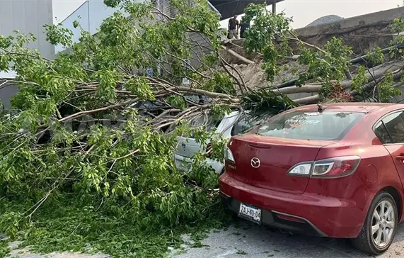 Ante esto, se tuvo que solicitar el apoyo del personal de poda del Ayuntamiento municipal para agilizar la liberación del automóvil.