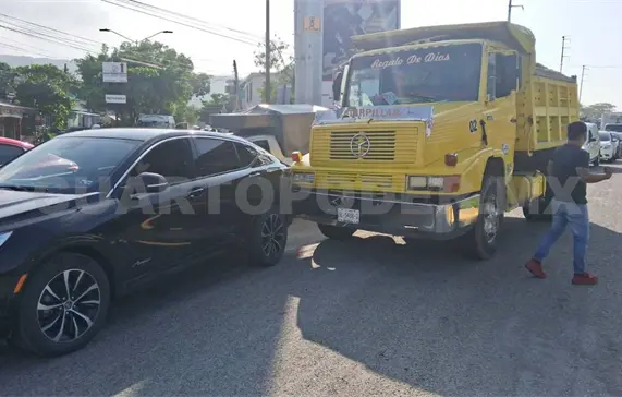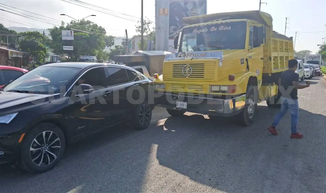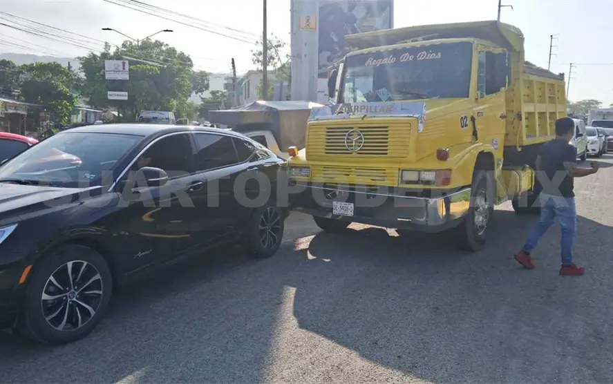 En el sitio se informó que un camión de volteo descendía del puente vehicular, pero no logró frenar a tiempo aparentemente por una falla mecánica en el sistema de frenos.