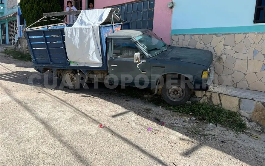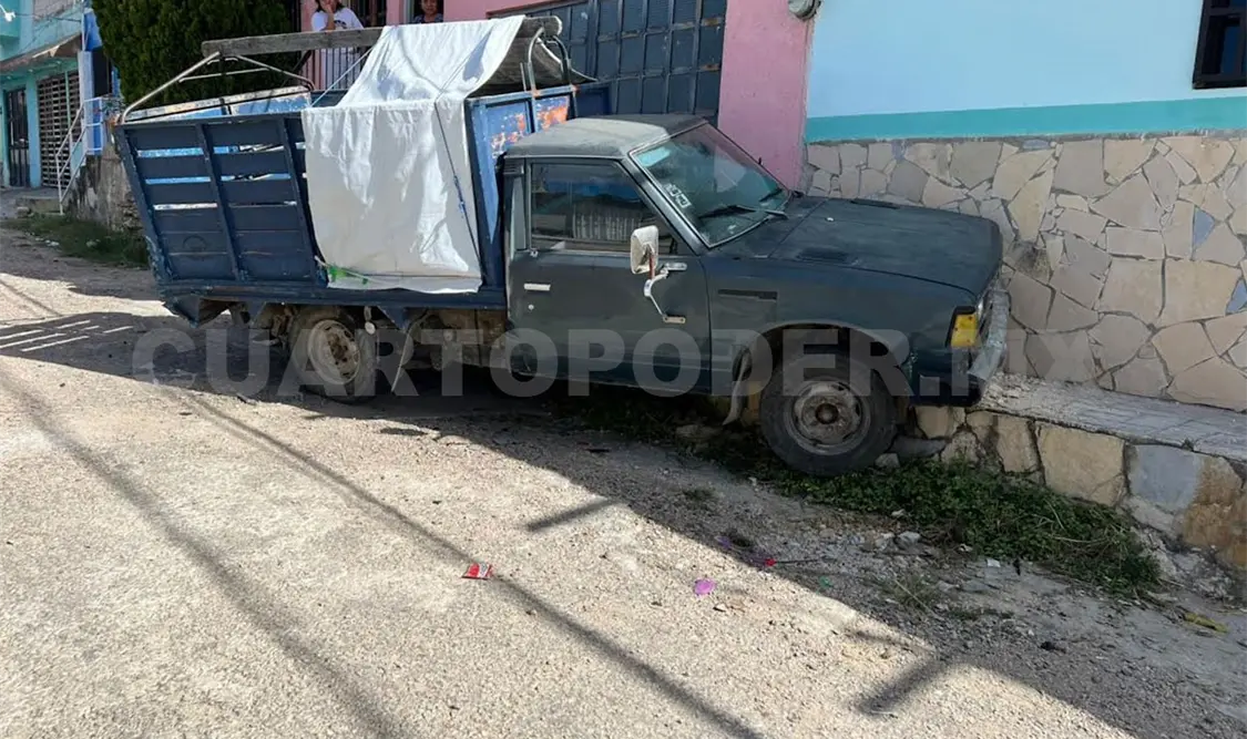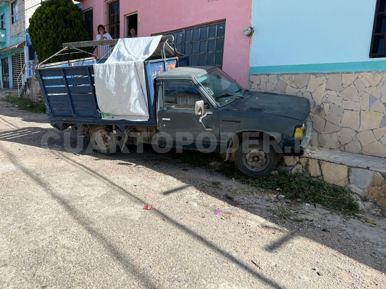 El percance ocurrió cuando el conductor de un vehículo desconocido impactó por alcance a un Nissan Datsun, color negro con redila azul, cuyo conductor perdió el control y terminó por colisionar contra la pared de una casa.