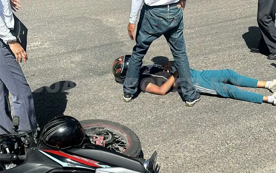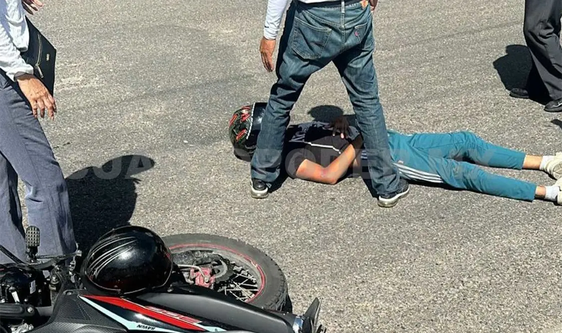 Con múltiples lesiones en las extremidades acabó un joven motociclista luego de ser impactado por un vehículo particular sobre el libramiento Norte, frente a la colonia Los Manguitos en la ciudad de Tuxtla Gutiérrez, después del mediodía del lunes.