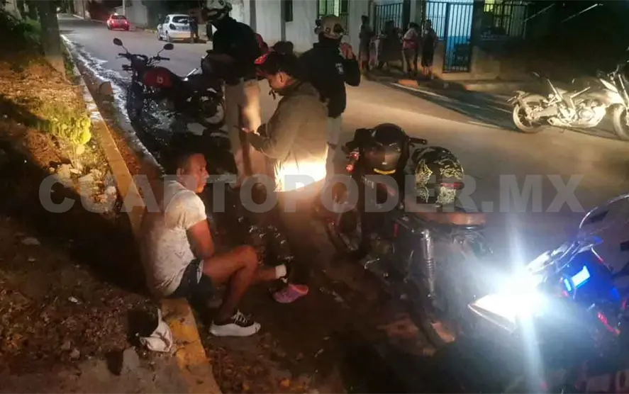 Con golpes en las extremidades terminó un motociclista luego de salir proyectado de su unidad en la colonia Linda Vista Shanká, durante la noche del sábado.