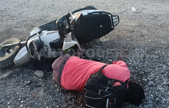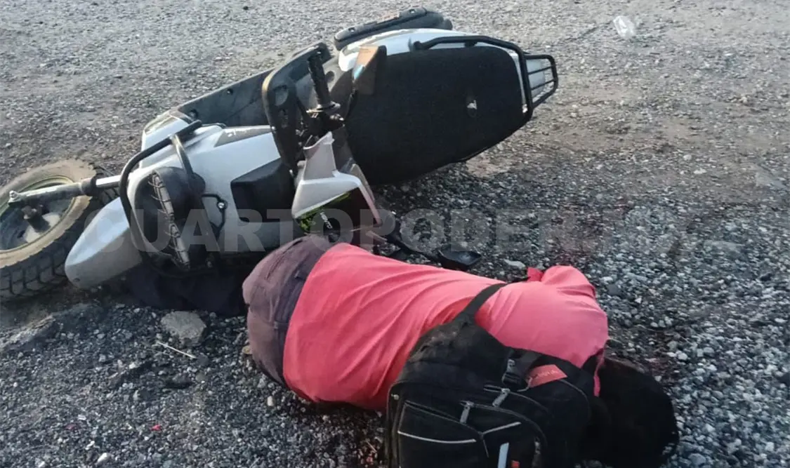 Se trataba de un sujeto que hasta el momento no ha sido identificado, pero vestía pantalón café, playera rosa y llevaba una mochila negra al hombro, quedando a un costado la motocicleta que al parecer manejaba, de color blanco con negro.