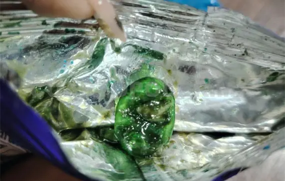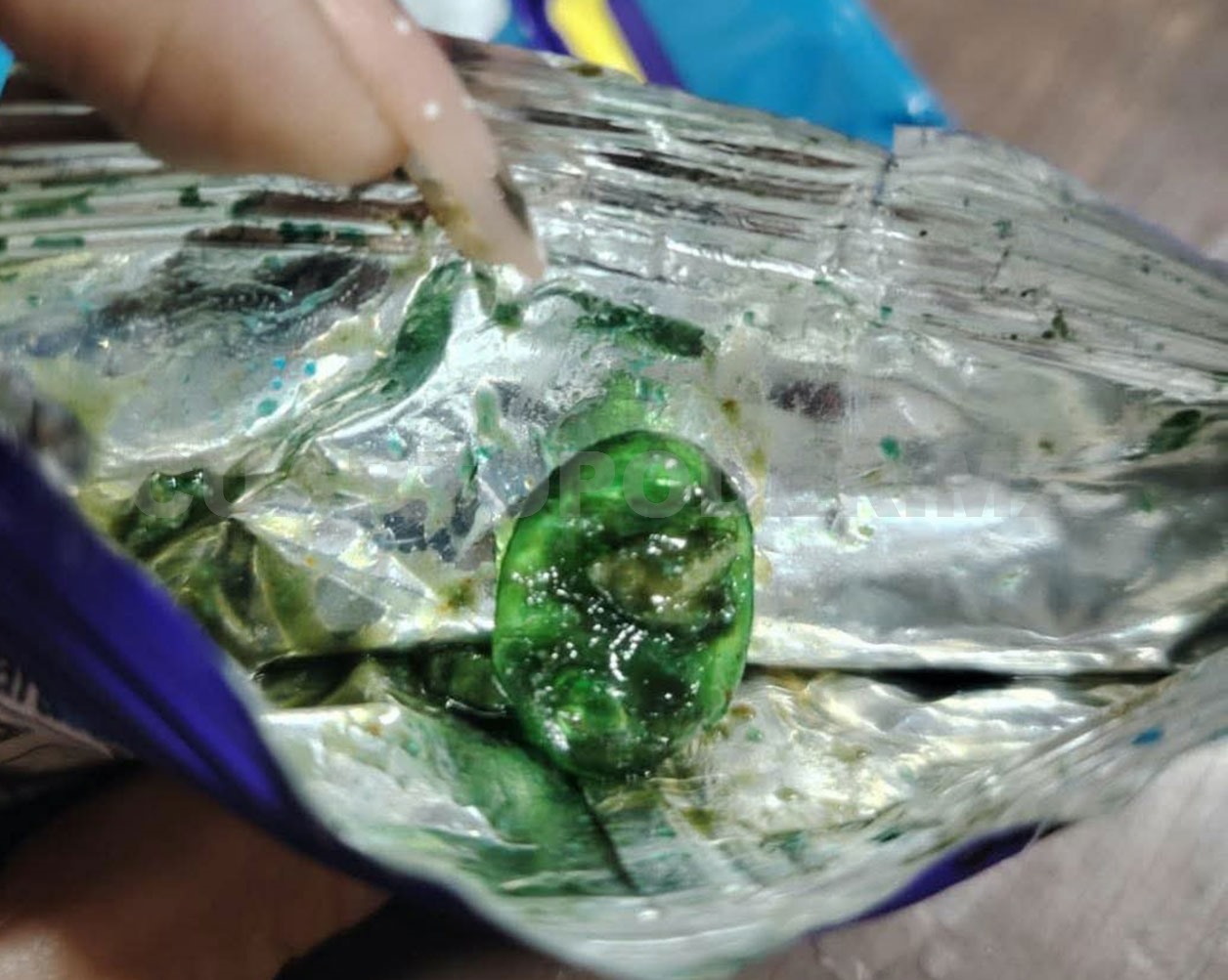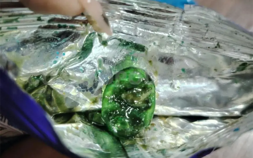 En redes sociales se denunció que dos jóvenes se encontraban vendiendo estos productos a bajo costo; sin embargo, al abrirlos hallaron en el interior una cápsula de color verde con una sustancia extraña.