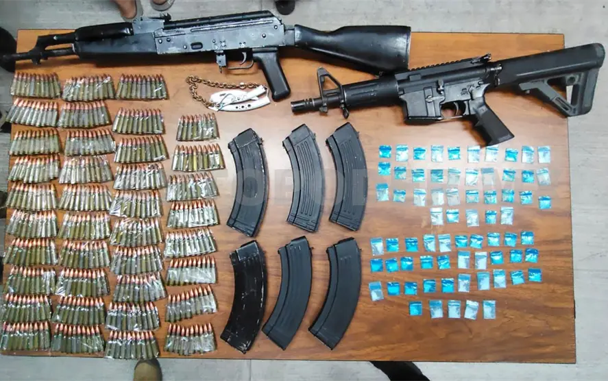Fueron identificados como Alexis “N”, Asael “N”, José “N”, Aarón “N”, Misac “N”, Eliseo “N”, Erick “N” y un menor de identidad reservada, a quienes les encontraron entre sus pertenencias 70 bolsitas con material sólido cristalino, un arma larga tipo MP-15, un arma larga tipo AK47, seis cargadores para AK47 y 378 cartuchos útiles calibre 7.62 mm.