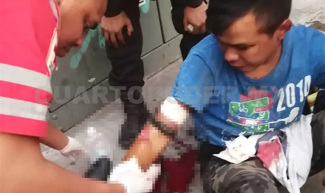 El hecho fue registrado alrededor de las 16:54 horas, por lo que agentes policiacos municipales arribaron a la escena y les informaron que un sujeto estaba sangrando profusamente de uno de los brazos.
