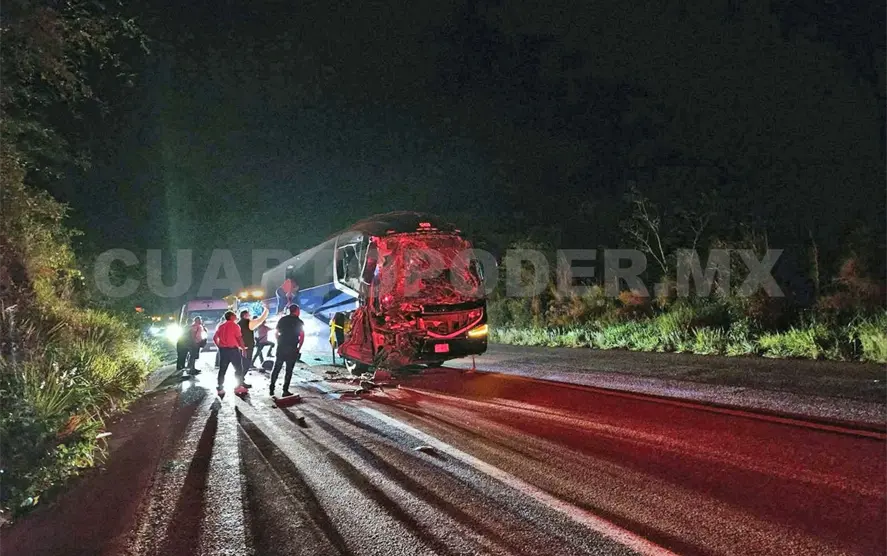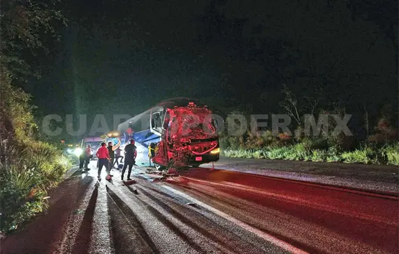 El hecho sucedió alrededor de las 05:00 horas del viernes. El transporte público con número económico 12400 yacía destrozado de la parte frontal y en medio del camino. Al parecer había chocado contra la unidad de carga por alcance.