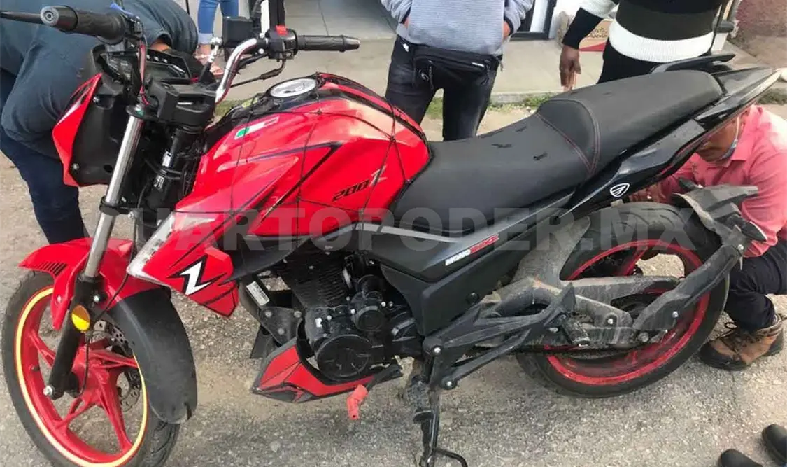 El hijo de la propietaria del vehículo robado, de nombre Carlos “N”, dijo que al momento que realizaba sus actividades como gestor de cobranza de una conocida financiera, se percató que un hombre se encontraba a bordo de una motocicleta de la marca Italika, modelo Z200, color rojo con negro, la cual coincidía con las características de la que le habían robado.