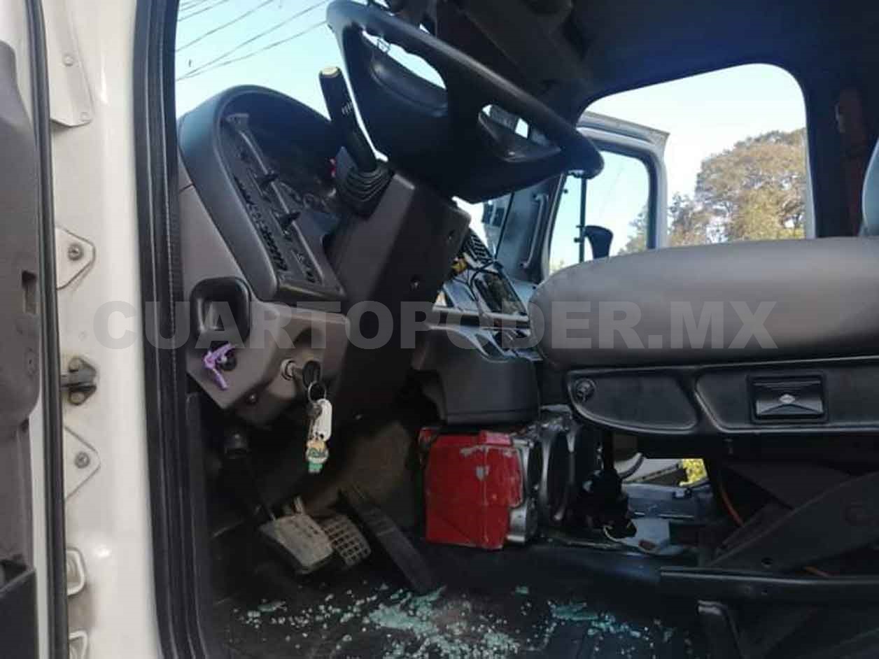 La corporación de la policía local recibió el reporte de un tráiler robado, el cual era una unidad de la marca Freightliner, con caja cerrada, color blanco.