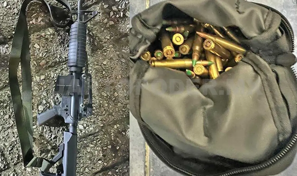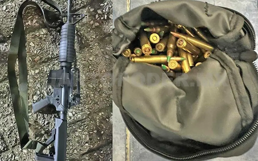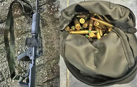 En la revisión le encontraron en el asiento del copiloto un fusil de asalto (AR-15) con un cargador abastecido con 30 cartuchos útiles calibre 5.56 mm.; le decomisaron también 76 proyectiles de las mismas características, los cuales portaba en el interior de una bolsa tipo mariconera.