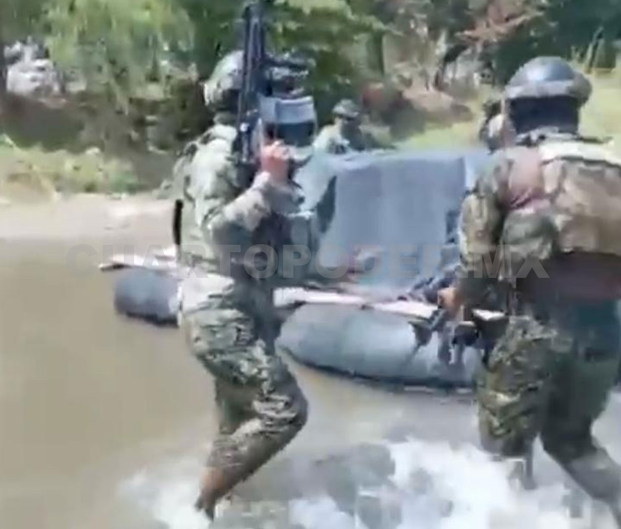 En un video que fue subido a las redes sociales, se observa cuando uno de los contrabandistas se acerca a los militares, quienes para impedir que las cosas pasen a mayores le permiten llevarse la balsa con el producto que era cubierto con plástico negro.