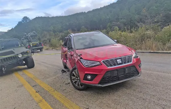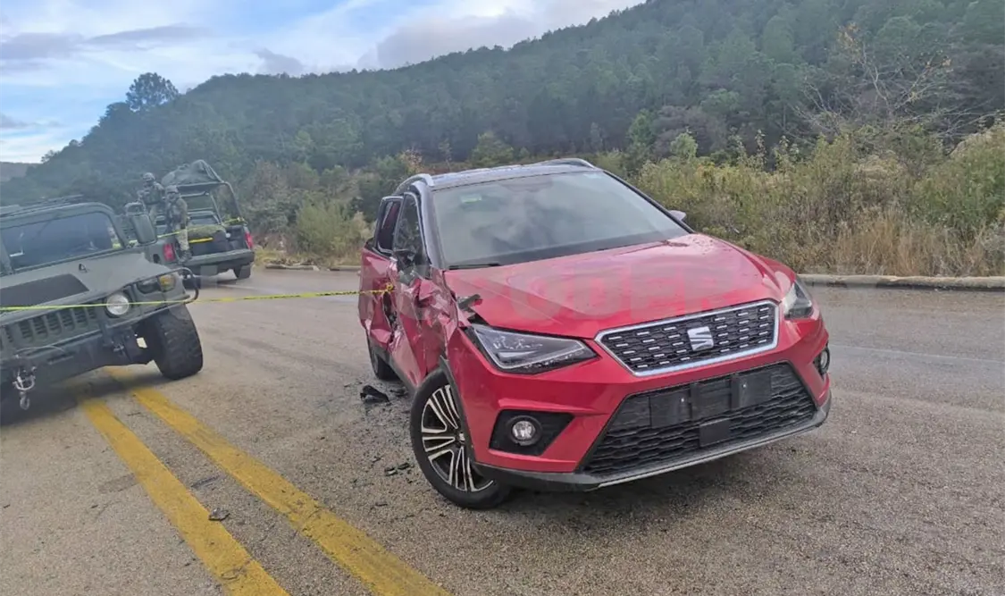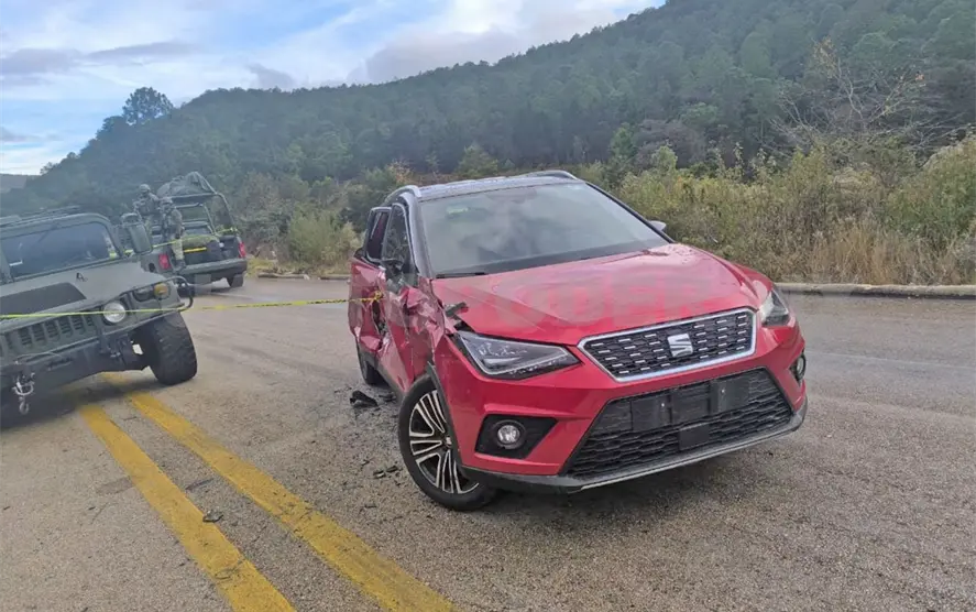 Una SUV particular de la marca Seat, color rojo, y una Hummer, color verde, perteneciente a la Sedena, se estrellaron al parecer por corte de circulación.