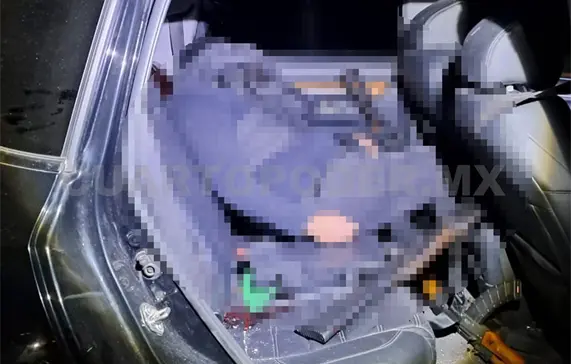 En la revisión e inspección a una camioneta Honda CRV, color negra con placas de circulación de Chiapas, descubrieron el cuerpo de un masculino sin signos vitales y con indumentaria táctica, armas largas, chalecos y cargadores abastecidos.