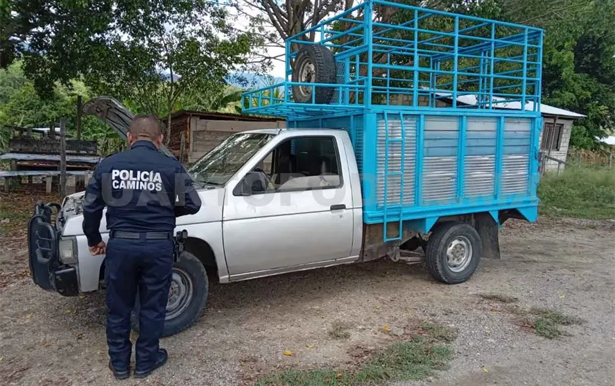Se trataba de una camioneta marca Nissan tipo Estaquitas, con placas de circulación 901-ZRH de la Ciudad de México, por lo que oficiales verificaron la serie del motor que estaba bañado con chapopote.