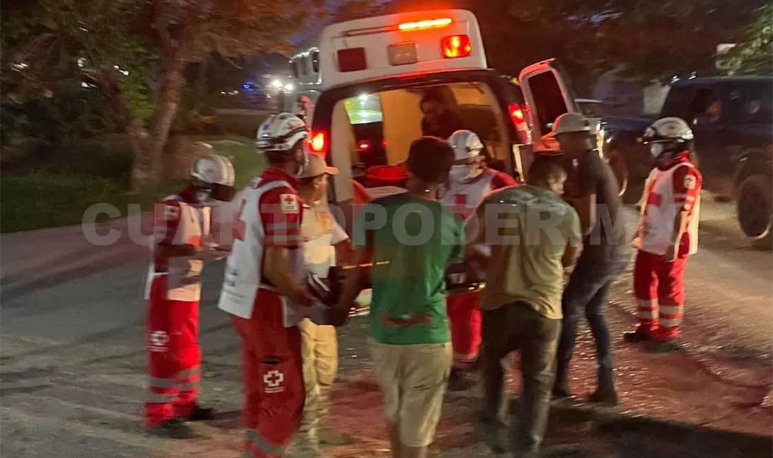 El encontronazo provocó la caída, golpes contusos y posibles fracturas en la pareja, quien fue atendida por paramédicos y elementos de la Policía y de Tránsito y Vialidad Municipal.