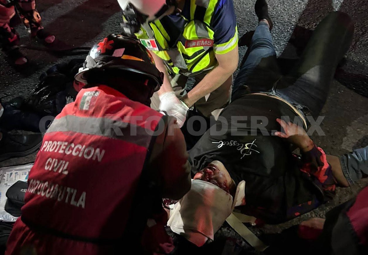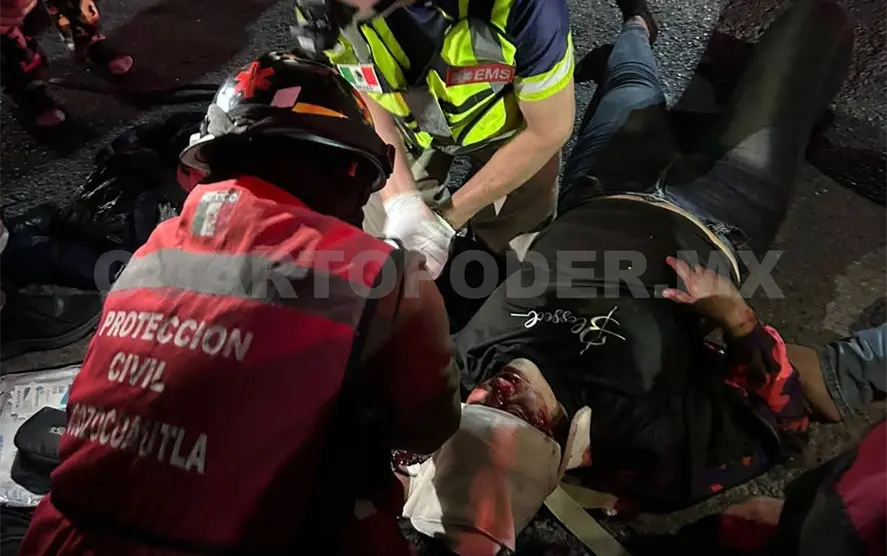 Al recibir el reporte, personal de Protección Civil se trasladó de inmediato al lugar de los hechos, en donde localizó a los tres ocupantes de una motocicleta modelo DM-200, con placas de circulación 64-N-R22, tendidos sobre la cinta asfáltica.
