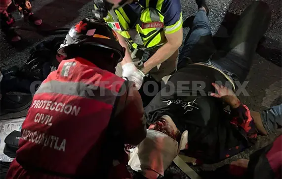 Los paramédicos brindaron atención prehospitalaria a Carlos "N" (21 años), quien presentaba lesiones de consideración y probable estado de ebriedad, por lo que fue trasladado de urgencia al hospital IMSS-Bienestar.