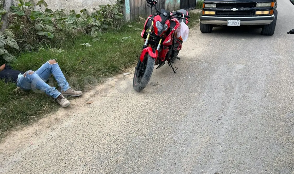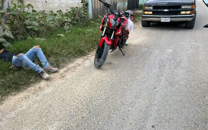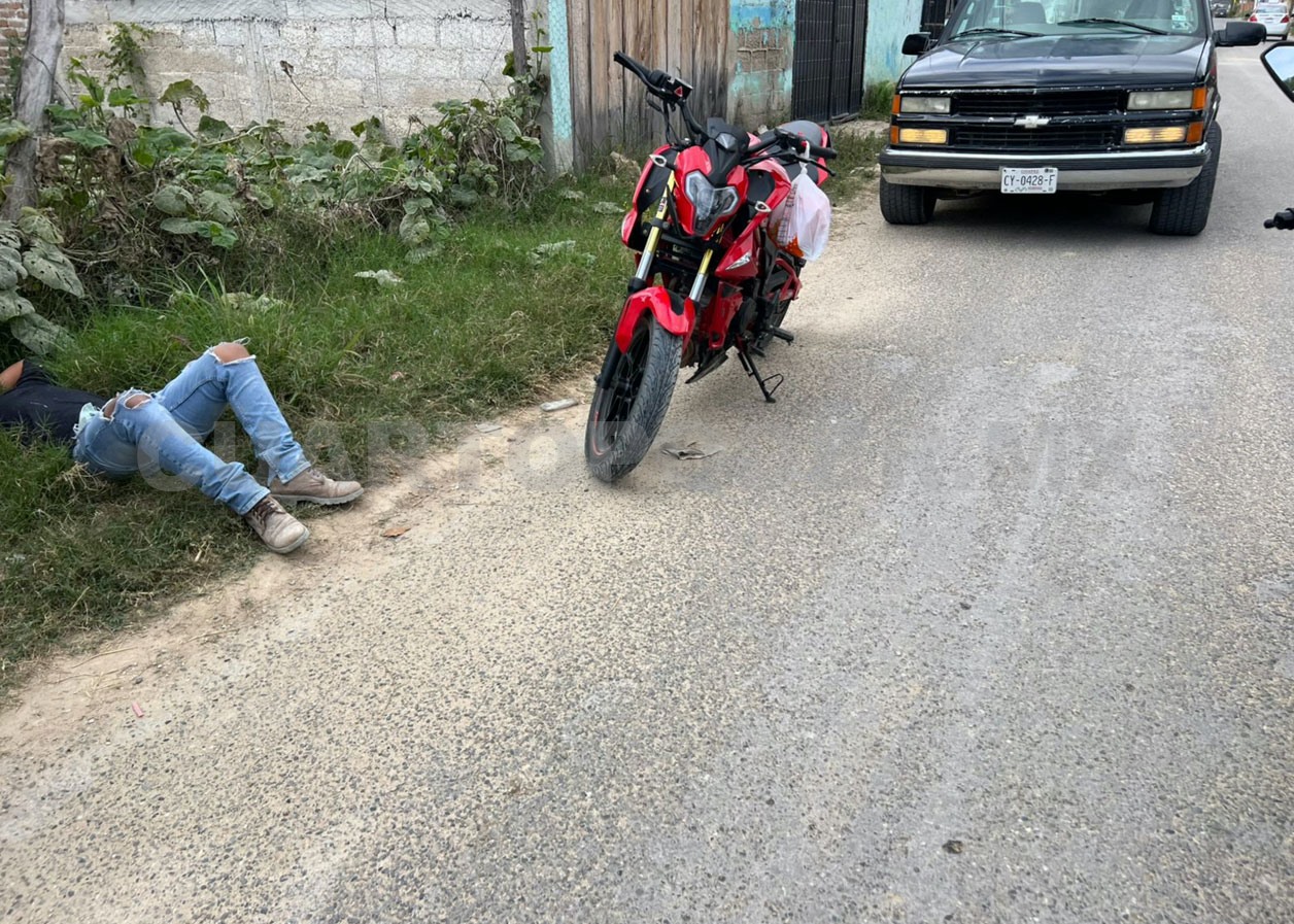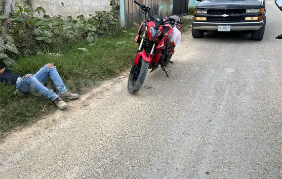 El percance se registró cuando un motociclista que circulaba a bordo de una Italika Vortex de color rojo, embistió a una persona del sexo femenino que intentó pasar al otro lado de la vía de comunicación, causando que ambos quedaran tendidos sobre el pavimento.
