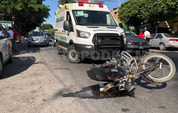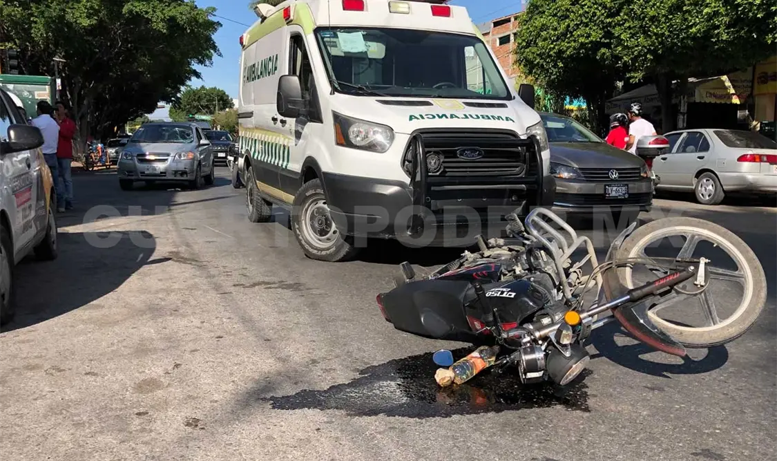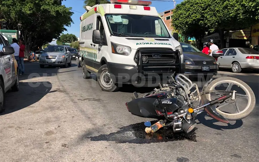 En un cruce de calles de la zona poniente una persona que se desplazaba en una motocicleta fue impactada por un automóvil particular. Los paramédicos llegaron para realizar la valoración y no fue necesario hospitalizarla.